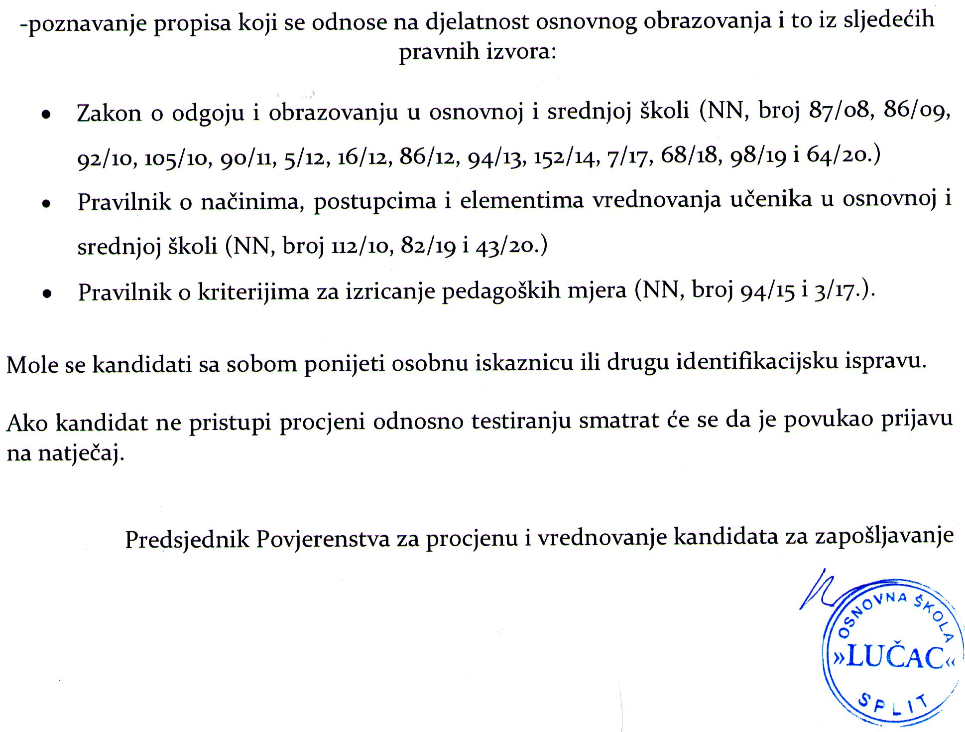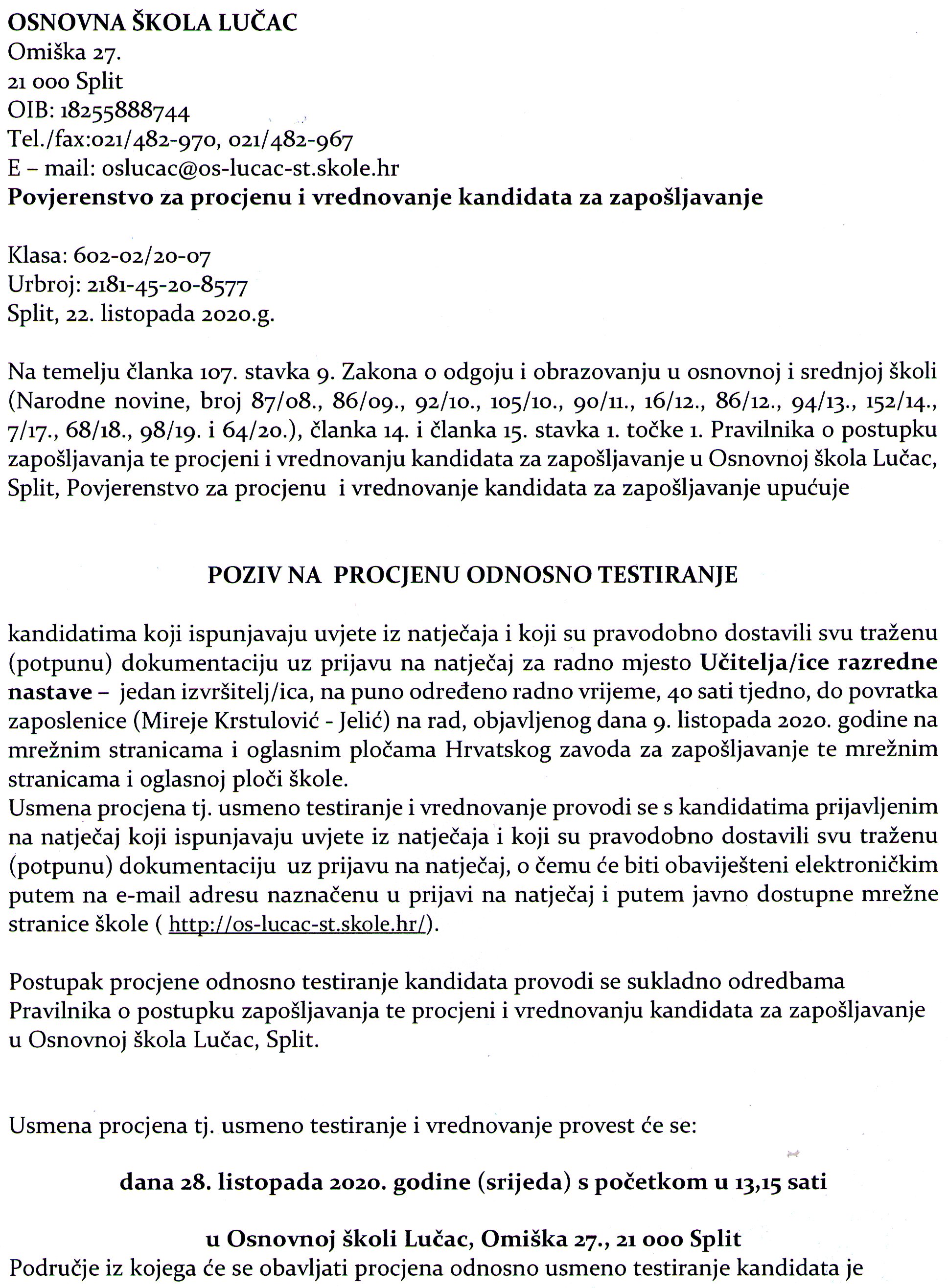 Klikom na sljedeće poveznice: Poveznica 1.dio i Poveznica 2.dio pročitajte Poziv na testiranje – radno mjesto učitelj/ica razredne nastave.